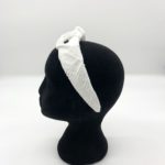 Cerchietto sartoriale per capelli in cotone scavato recuperato da una blusa di Marni – Summer 2010 e perle lineari nere in bachelite. Realizzato a mano, pezzo unico
